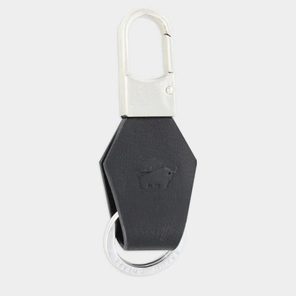 Schlüsselanhänger aus süddeutschem Rindleder mit großem Ring und Metallkarabiner für einfache Befestigung. Das Büffel-Logo ist in edler Blindprägung hervorgehoben. Handgefertigt in Kirn an der Nahe, ein echtes MADE IN GERMANY-Produkt.