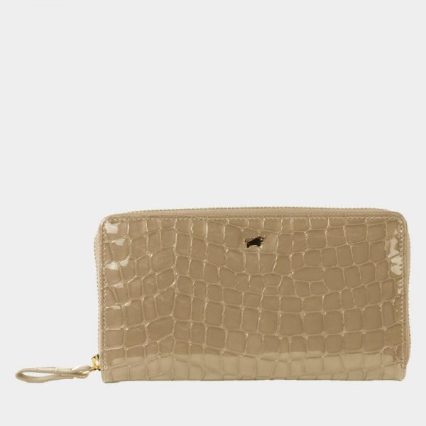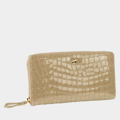 Elegante Reißverschlussgeldbörse in modischer Kroko-Optik aus weichem, italienischem Kalbleder. Mit 18 Kreditkartenfächern, 3 Steckfächern, Reißverschlussfach für Münzgeld und zusätzlichem Steckfach auf der Rückseite bietet sie maximale Funktionalität. Goldene Metall-Accessoires und dezenter Metallic-Schimmer verleihen Wertigkeit.